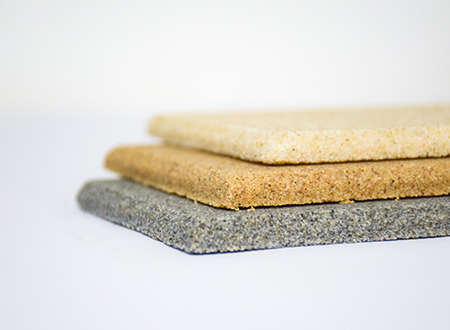 微粒材料是一種新型綠色裝飾材料,具備優異的聲學性和物理性能。該材料是以天然砂粒或經環保處理的固廢顆粒為骨料,以環保膠凝劑,通過壓振工藝,生產的具有大量相互連通的微小空隙的多孔材料。